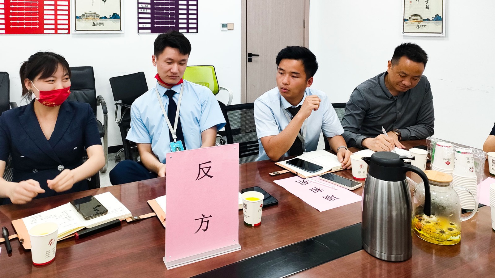 會(huì)上,置業(yè)顧問(wèn)被分成了正反雙方,正方代表龍湖御府項(xiàng)目,反方代表各競(jìng)品項(xiàng)目,辯論賽通過(guò)一問(wèn)一答的形式就宇龍·龍湖御府項(xiàng)目與各競(jìng)品項(xiàng)目?jī)?yōu)勢(shì)進(jìn)行對(duì)標(biāo)?,F(xiàn)場(chǎng)置業(yè)顧問(wèn)積極發(fā)言,氛圍既緊張又熱烈。