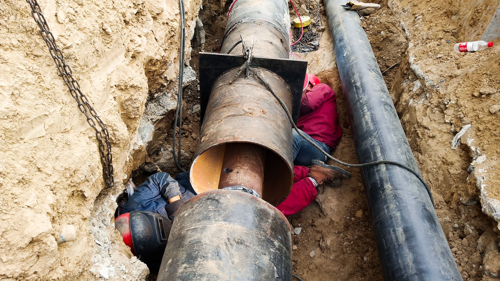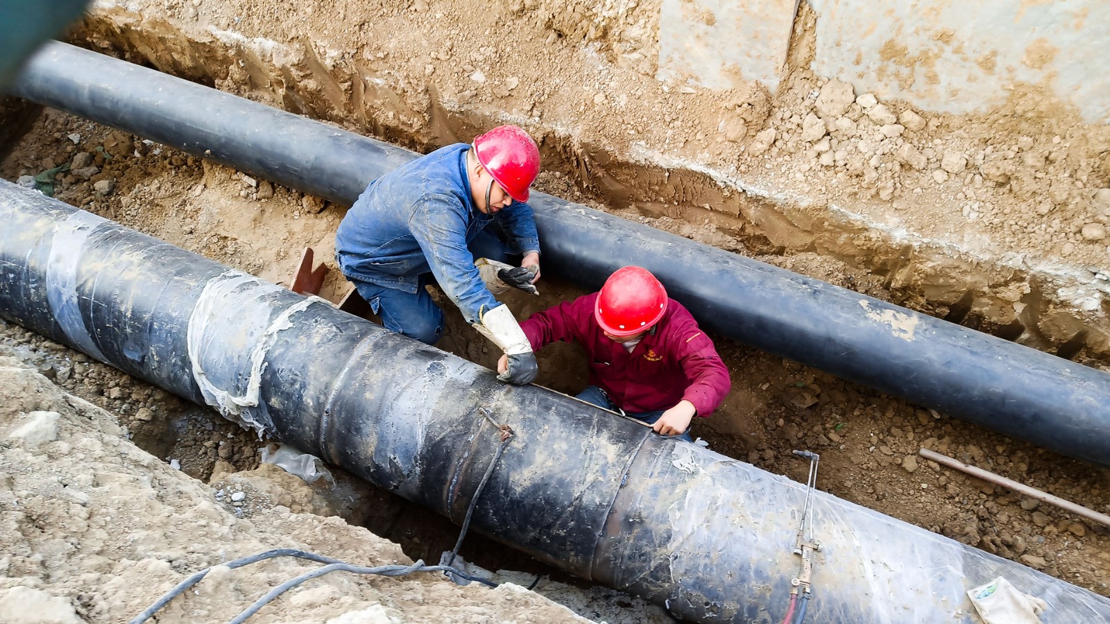 10月25日,東區(qū)楓湖壹號(hào)小區(qū)熱網(wǎng)施工現(xiàn)場(chǎng),熱力公司施工人員正在對(duì)最后一處固定樁進(jìn)行焊接。