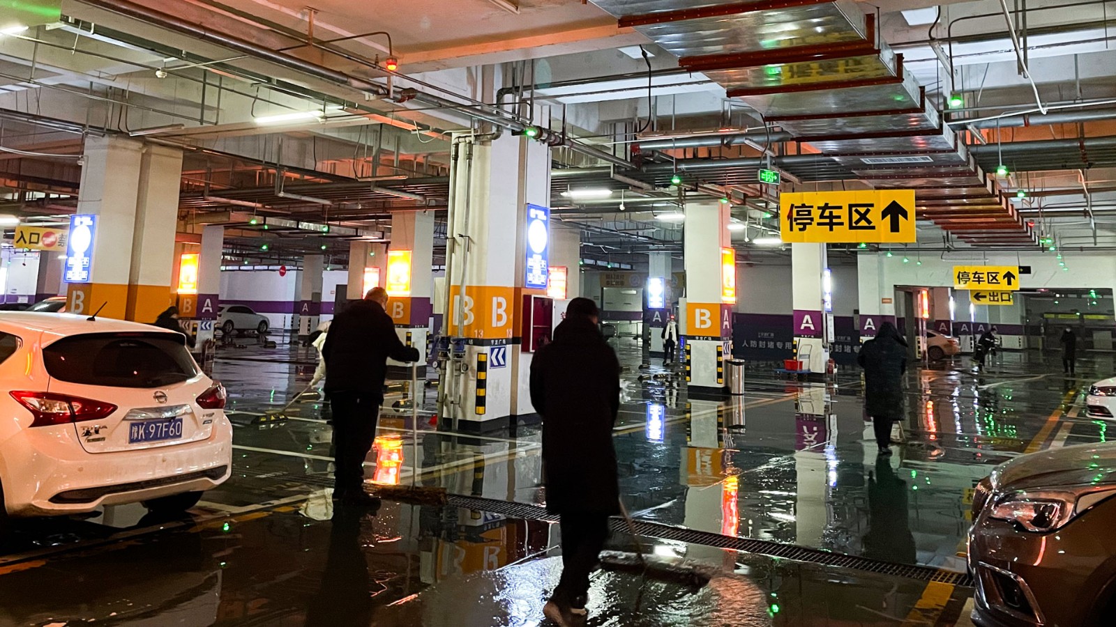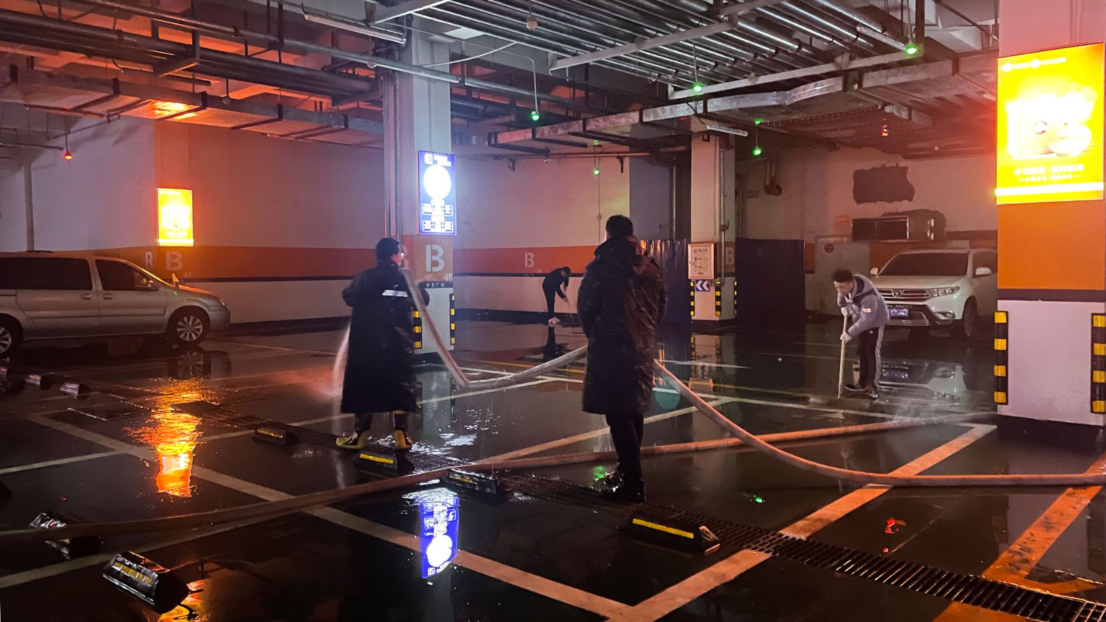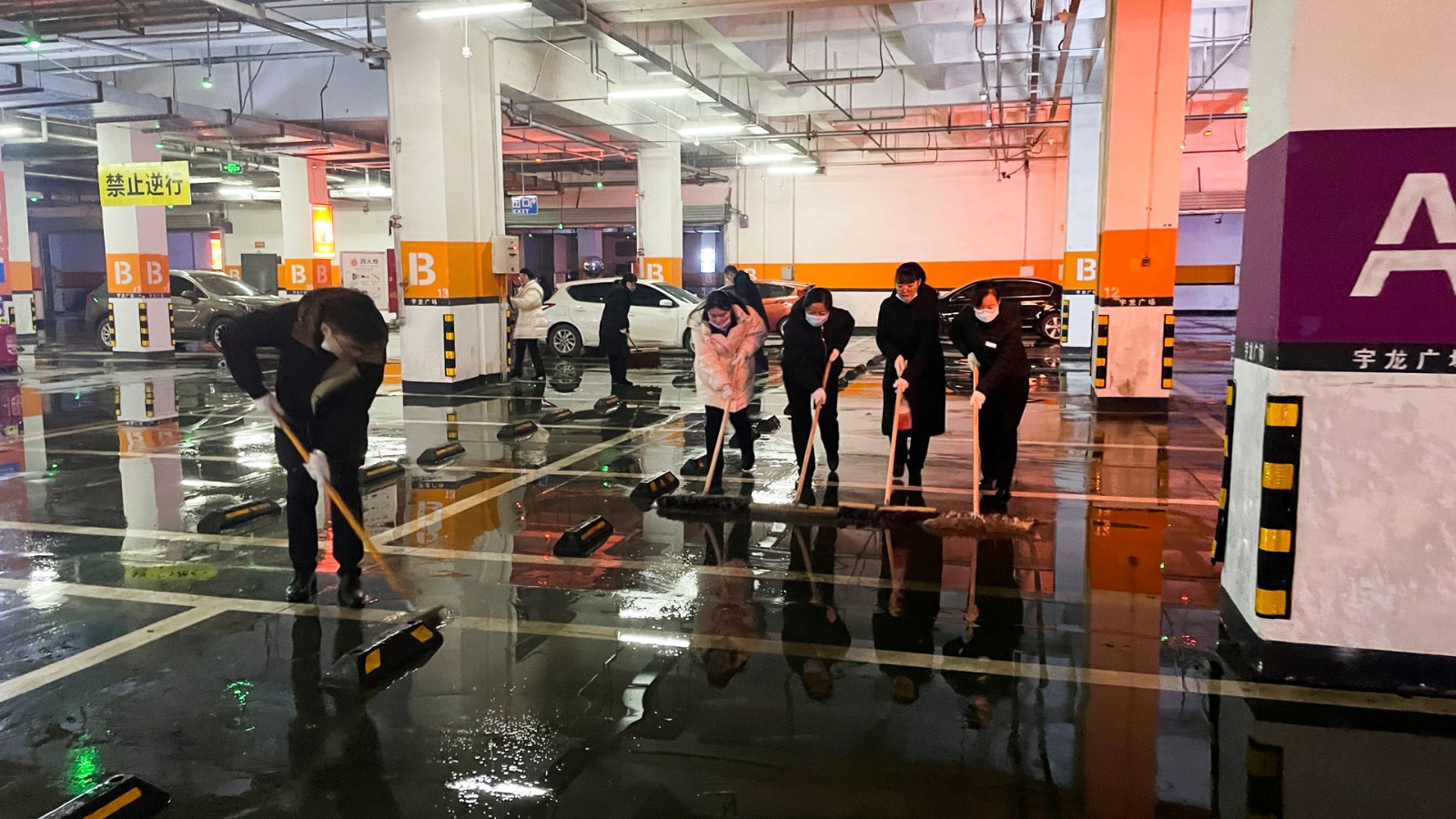 連續(xù)幾天的降雪,使廣場負二停車場的地面堆積了大面積的泥垢。為給廣大顧客和業(yè)主營造一個干凈、舒心的停車環(huán)境,1月30日早上,應(yīng)商貿(mào)公司執(zhí)行董事胡總要求,綜合部牽頭,公司各部門共同對負二停車場開展了全方位的衛(wèi)生大掃除。