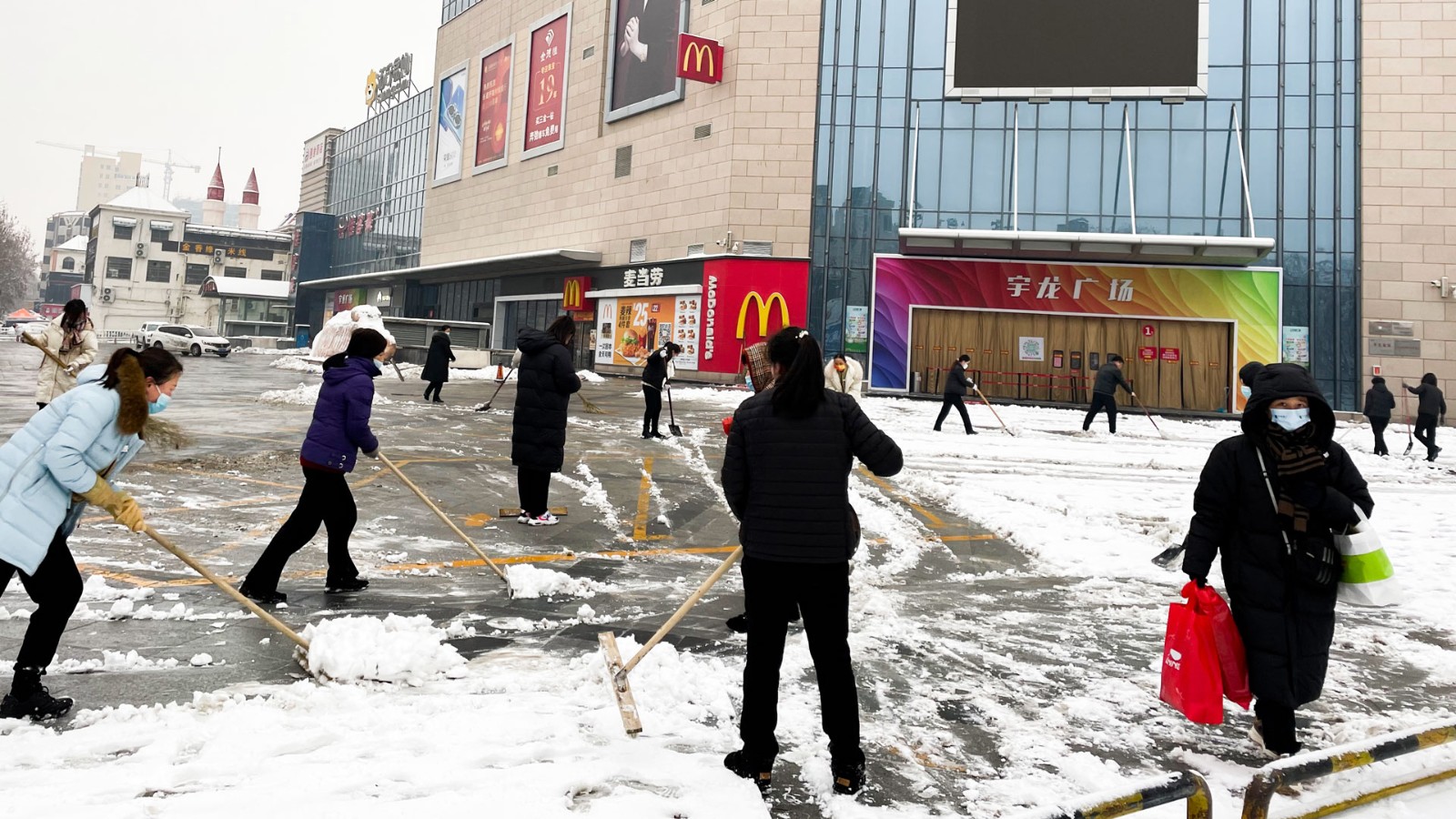 一夜大雪飄舞,天地銀裝素裹,宇龍廣場(chǎng)的外廣場(chǎng)和辦公區(qū)平臺(tái)被厚厚的積雪覆蓋,給出行和需要停車的顧客帶來了諸多的不便,同時(shí)也存在安全隱患。為保障安全,方便出行,1月22日早上,商貿(mào)全體員工在執(zhí)行董事胡總的帶領(lǐng)下,展開了掃雪活動(dòng)。
