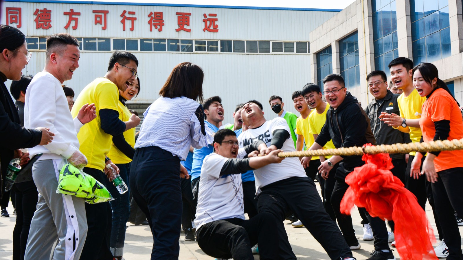 在隨后的比賽中,“拔河比賽”經(jīng)過三輪角逐,第一名被商貿(mào)酒廠聯(lián)隊拿下,這第一名少不了喉嚨嘶啞的啦啦隊的一份功勞?!皠恿疖嚒痹凇盎ケ⊥取钡摹捌D難”賽程中進(jìn)行,幾圈下來集團(tuán)后勤及汽貿(mào)聯(lián)隊跑的更快。“跳大繩”環(huán)節(jié)到了,熱力市政聯(lián)隊表示一口氣跳三十下都不喘氣兒的,項目第一名拿的穩(wěn)穩(wěn)當(dāng)當(dāng)。運(yùn)動會現(xiàn)場,助威一浪接著一浪,歡笑聲、吶喊聲也是此起彼伏,好不熱鬧。