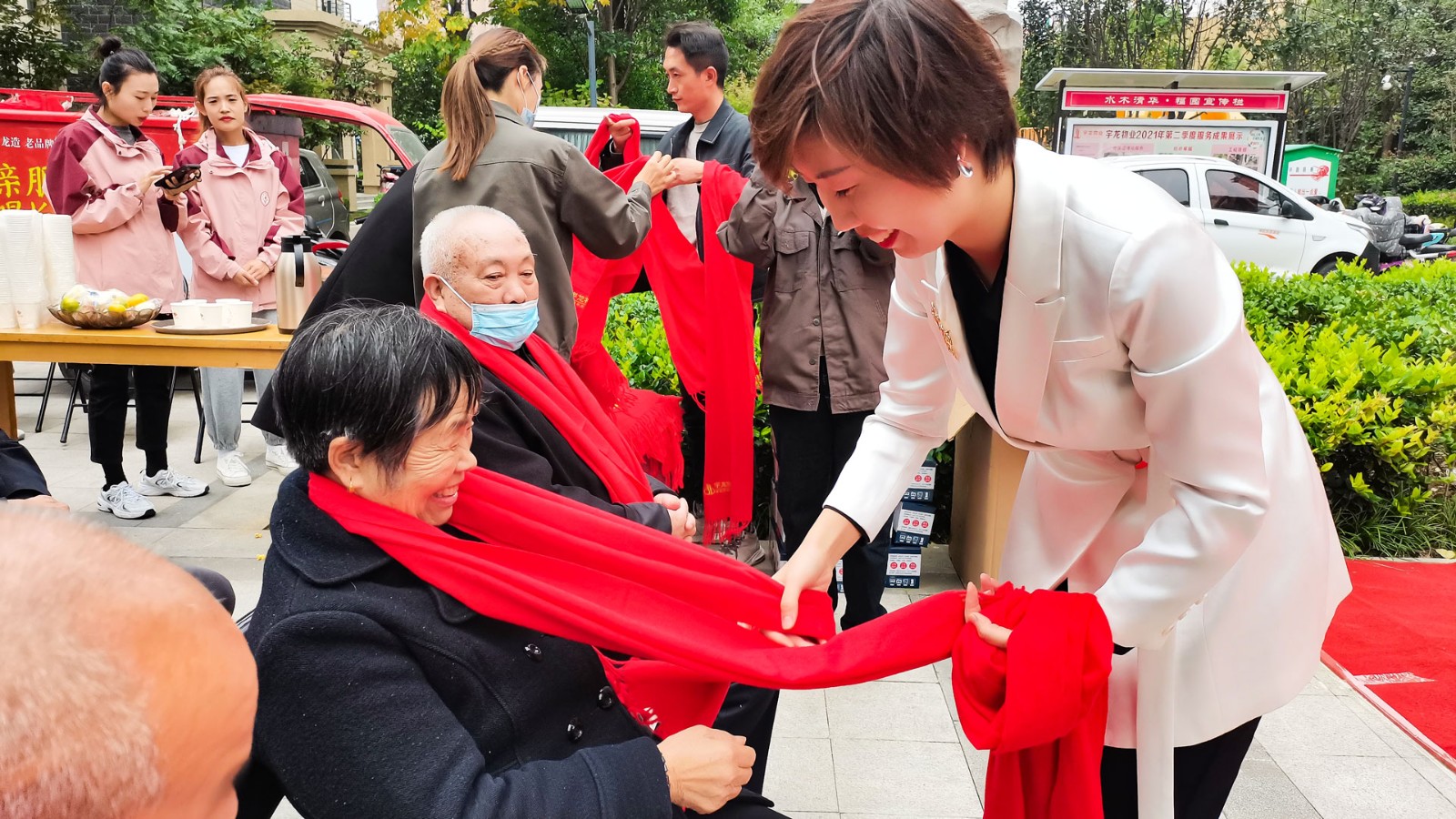 園區(qū)老人相聚一堂,演出開始前,物業(yè)工作人員親手為老人系上了愛的紅圍巾,在寒冷的天氣為他們送上了幾分暖意。活動現(xiàn)場老人談家常、話重陽。舞蹈、快板、戲曲等等精彩節(jié)目呈現(xiàn),掌聲陣陣,歡笑不斷。
