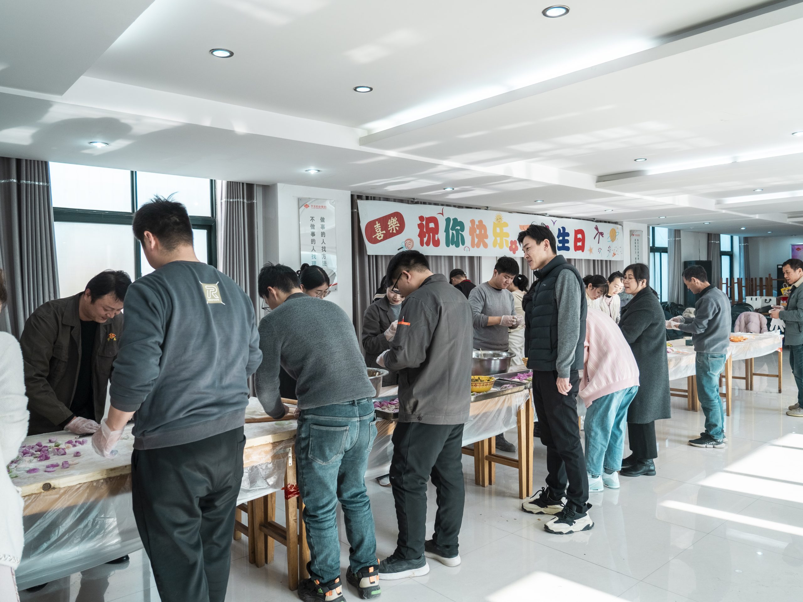 生日會(huì)現(xiàn)場(chǎng)溫馨喜慶,除了輕松的趣味游戲,豐富多樣的小食、蛋糕、精心準(zhǔn)備的生日禮品外。與眾不同的是,本季度生日會(huì)恰逢冬至節(jié)氣,公司也特別安排了包餃子和做糖葫蘆的環(huán)節(jié),大家圍在一起,紛紛卷起袖子,大展身手。在熱騰騰的蒸汽中,大家品嘗著親手包的餃子,感受自己動(dòng)手的樂(lè)趣,臉上洋溢的滿足與喜悅,為本次員工生日會(huì)活動(dòng)畫上圓滿的句號(hào)。